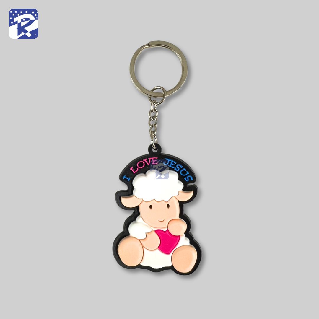 พวงกุญแจแกะ สีขาวหัวใจสีชมพู